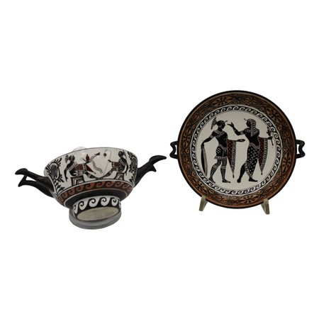 Tazza da puerpera Giustiniani Ceramica riccamente decorata con scene classiche e motivi ornamentali policromi. Cm d 17,5