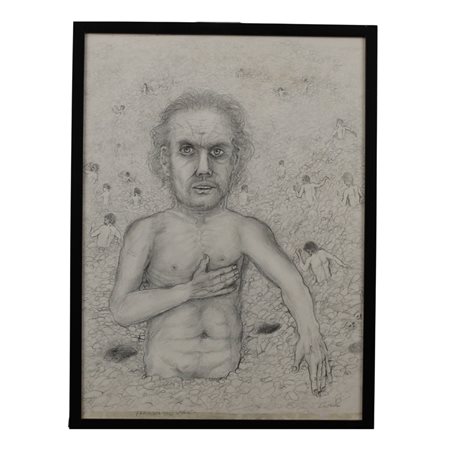 Bruno Caruso (1927/2018) "Farinata degli Uberti" Matita su carta. Autentica Archivi "Bruno Caruso" Palermo.2008. Cm 46x64,5