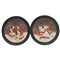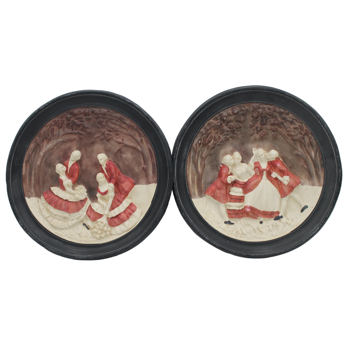 "Scene galanti" Coppia di piatti in gesso a rilievo e dipinto. Secolo XX. Cm d 35