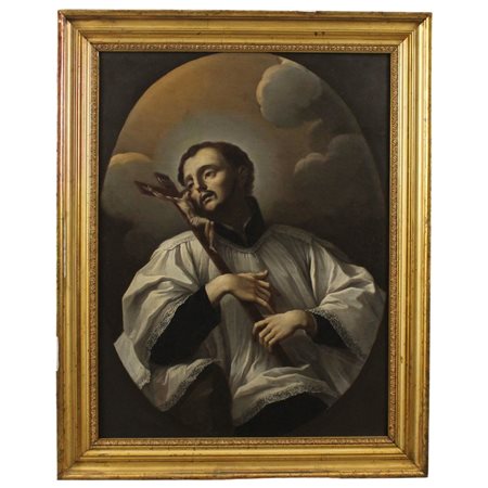 Scuola dell'italia meridionale del secolo XVIII "San Luigi" Olio su tela in cornice in legno dorato (restuair, rifodero e ritelaiatura). Cm 96x73