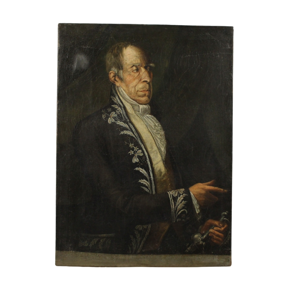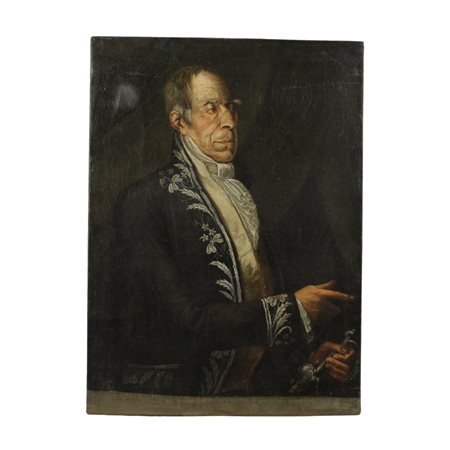 Scuola siciliana degli inizi del secolo XIX "Figura di nobiluomo" Dipinto ad olio su tela (rifoderato e restaurato). Cm 96x70