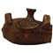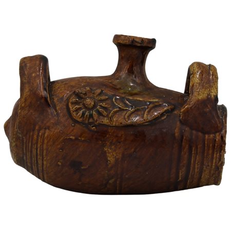 Scaldino Antica maiolica color ocra decorata a motivi floreali a rilievo. Collesano. Secolo XIX. Cm h 21