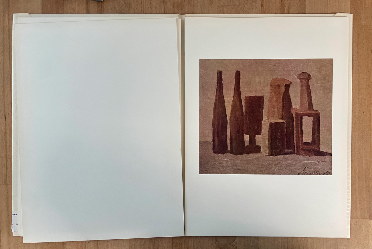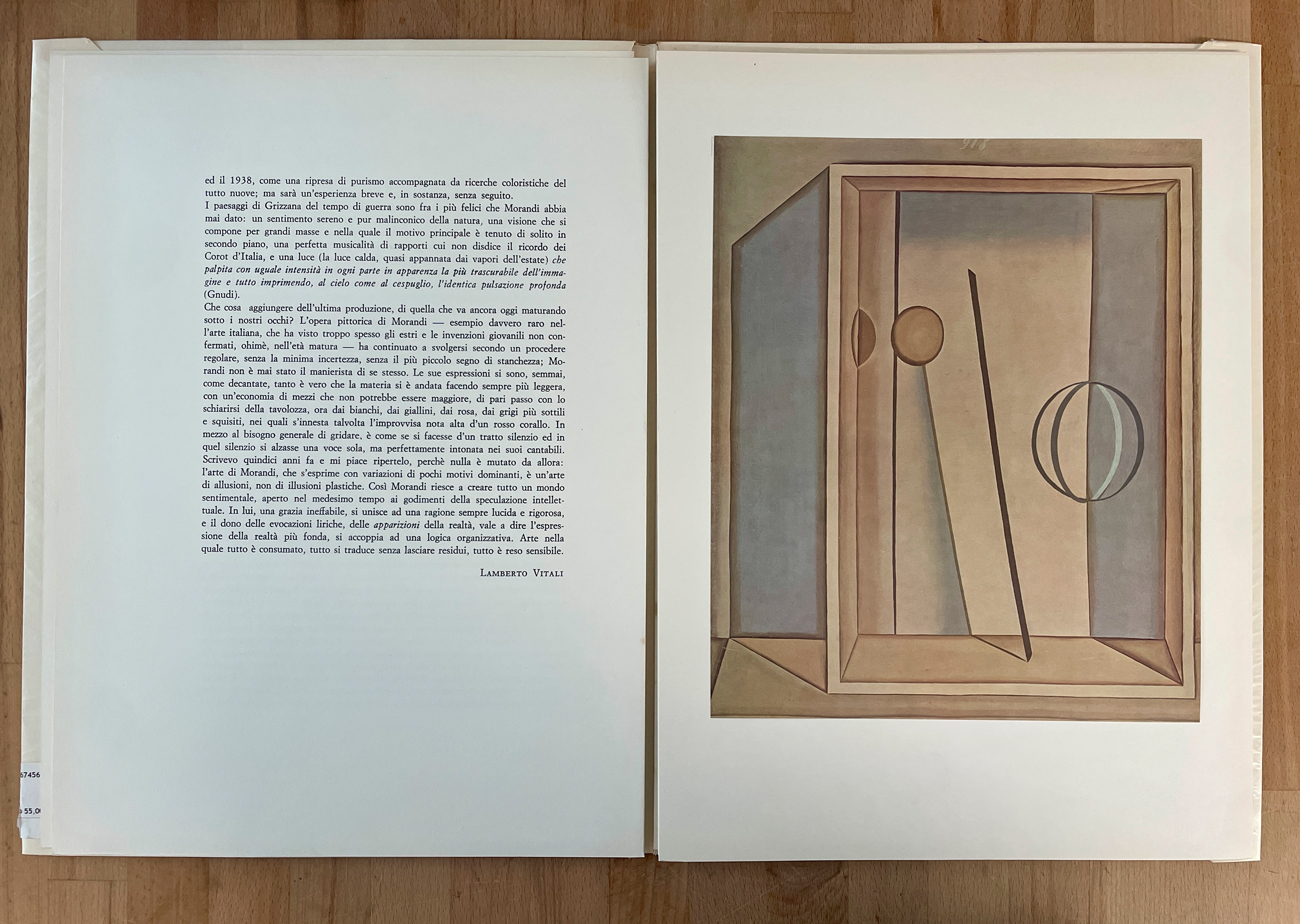 Edizione d'arte recante testo di Lamberto Vitali e 12 riproduzioni sciolte di opere di Giorgio Morandi