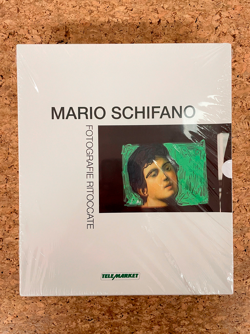 Cofanetto contenente due cataloghi riccamente illustrati inerenti le celebri fotografie ritoccate a pennarelli e smalti di Mario Schifano
