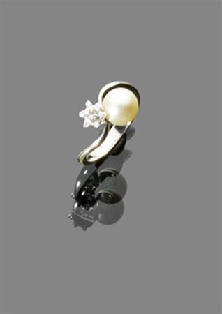 ANELLO Anello contrariè in oro bianco con perla e brillante di ct 0,25 ca e...