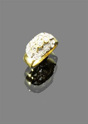 ANELLO Anello in oro giallo e oro bianco con diamanti taglio brillante per complessivi ct 0,55 ca Peso gr 8,60 yellow and white gold ring with brillant cut diamonds approx total 0,55 kt Weight 8.60 gr