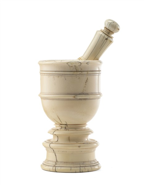 Mortaio con pestello in avorio tornito Germania, secolo XVIII (h. cm 15; pestel