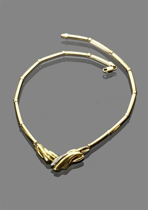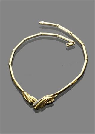 GIROCOLLO Girocollo in oro giallo a segmenti e inserto in oro bianco con incastonati diamanti taglio brillante per complessivi ct 0,08 ca Peso gr 25,00 DAMIANI yellow gold segmented choker with white gold insert set with brillant cut diamonds approx total 0,08 kt Weight 25.00 gr DAMIANI