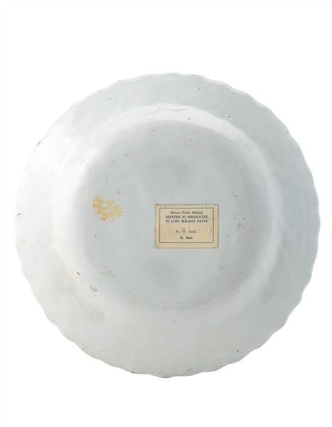 On the reverse, exhibition label: *Museo Poldi Pezzoli. Mostra di Maioliche di Lodi, Milano e Pavia. N. 8 Coll. E. Zeri*.