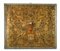 18th-century art. Polychrome painted and lacquered wooden panel decorated with a vase of flowers, leaf scrolls and birds on a gilded background (67x104 cm) in a faux marble painted wooden frame (defects).