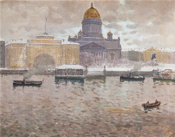 Ignoto sovietico, secolo XX. "Cattedrale di Sant'Isacco ", olio su tela (cm 62x