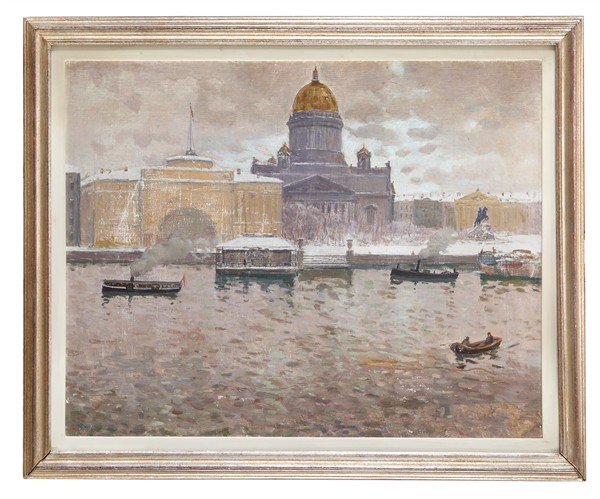 Ignoto sovietico, secolo XX. "Cattedrale di Sant'Isacco ", olio su tela (cm 62x75) In cornice (difetti)