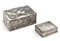 Argentieri del secolo XX. Lotto composto da una scatola in argento con segreto raffigurante Leda e il cigno (cm 7,5x2x5,5) e una scatola da tavolo con coperchio incernierato decorata a rami fioriti con angioletti e interno in vermeil (cm 12,5x4,5x9,5) (g 460) (difetti)