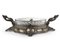 Centrotavola in argento biansato con prese decorate a volute fogliate, profilo traforato con bordura a torchon, piedini a rocaille con vasca in vetro molato. Iscritto e datato "19 Mai 1892". Austria-Germania, fine secolo XIX (g netti 1300) (h. cm 14,5; L. cm 48) (difetti)