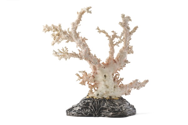 Manufacture of Torre del Greco, workshop of Carlo Parlati (1934-2003) mid 20th century. " The four seasons" branch of finely sculpted white coral, mounted on a silver base with gold ring 18Kt (cm tot 33x33x15; only coral h. cm 26) (minor defects)