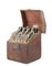 Porta posate da viaggio rivestito in marocchino impresso, serratura con chiave