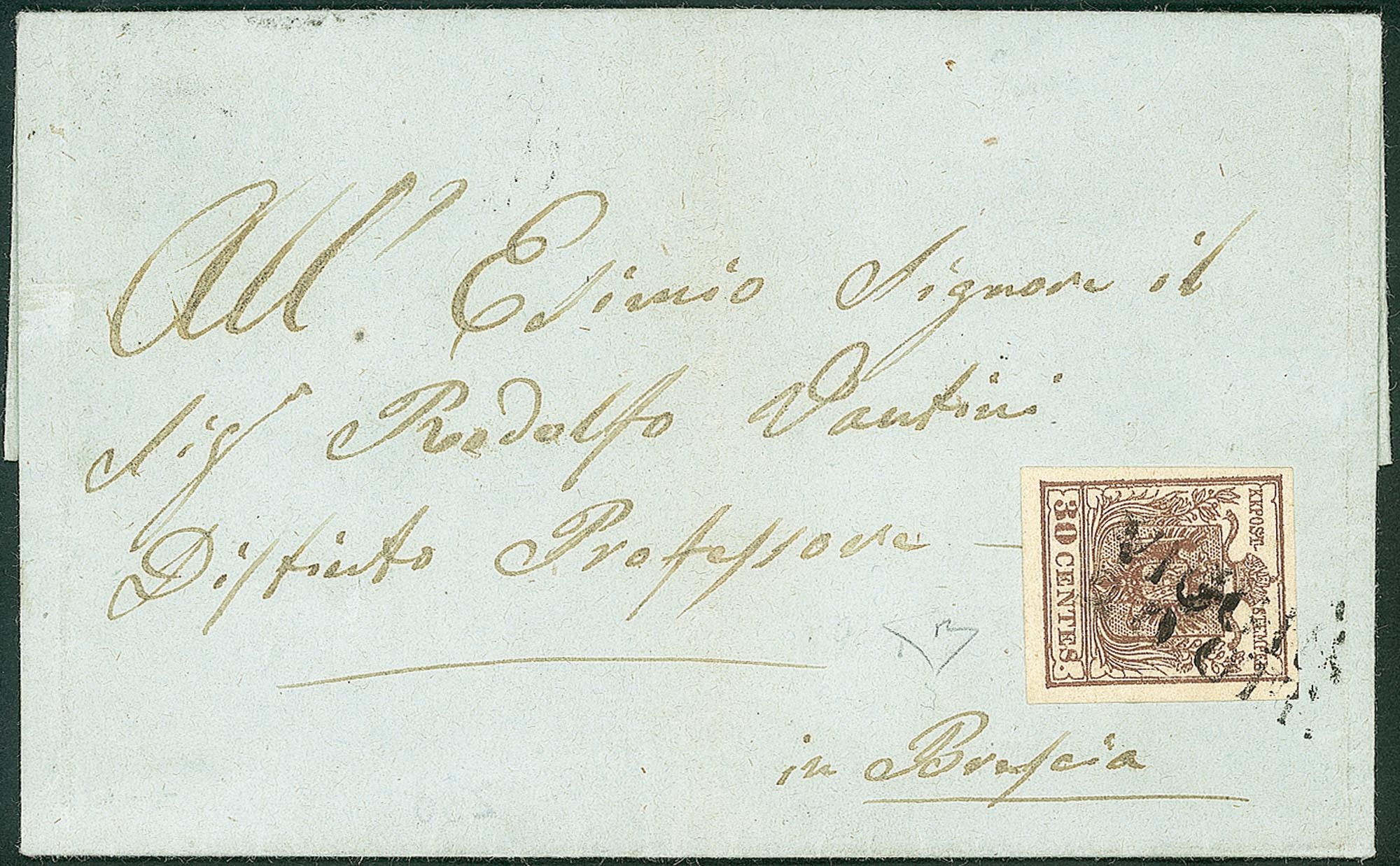 Lettera affrancata con 30 cent bruno lillaceo (9) II tipo per Brescia - molto bella - cert. E. Diena