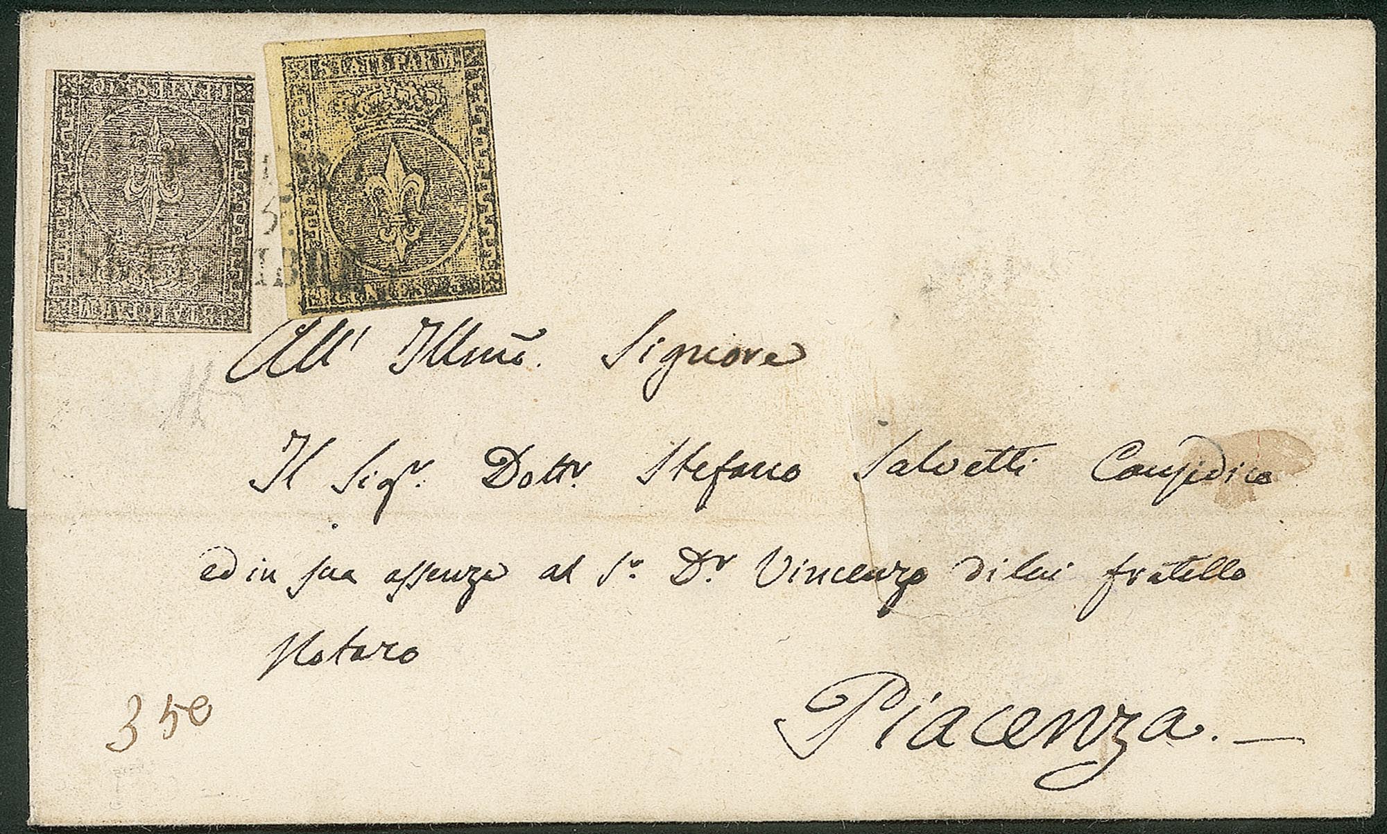 Lot 113 | Antichi Stati Italiani - Parma - Lettera con 5 cent giallo + 10 cent nero (1/2)