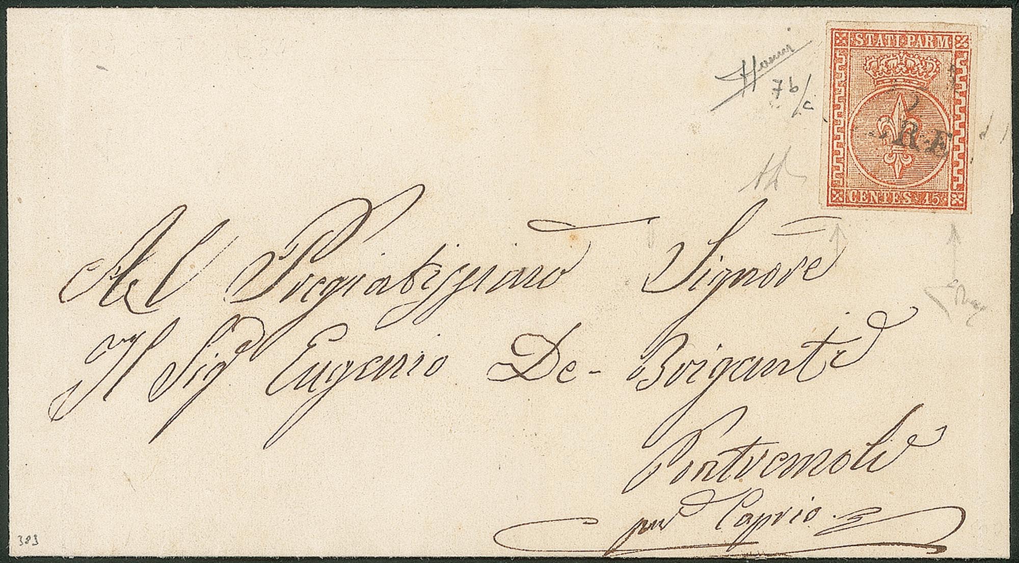Lot 125 | Antichi Stati Italiani - Parma - Lettera da Parma a Modena con 15 cent vermiglio (7c)