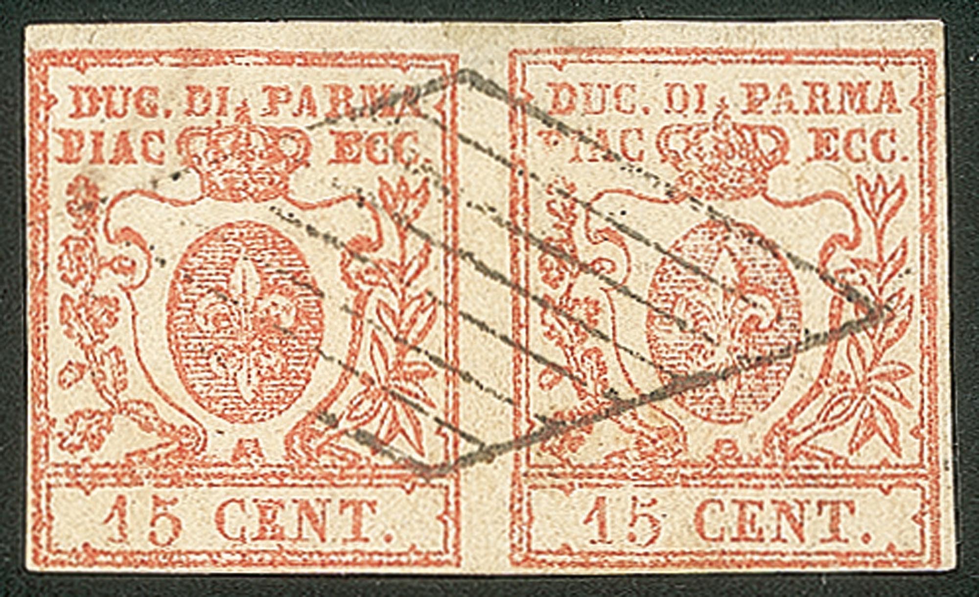 Lot 130 | Antichi Stati Italiani - Parma - 1859 - coppia usata del 15 cent vermiglio chiaro (9a)