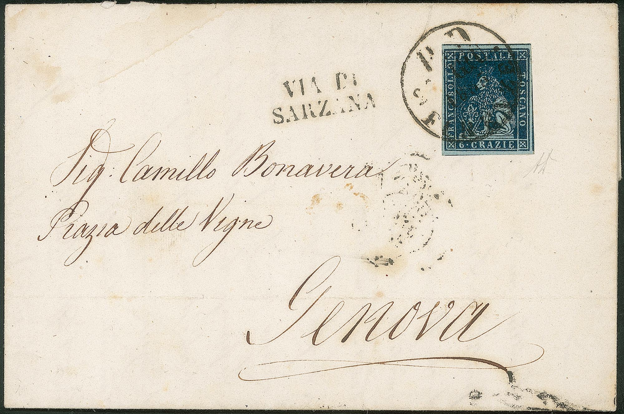 Su lettera da Firenze (cerchio grande con PD) a Genova del 25.6.53 + Via di Sarzana a fianco - molto bella - A. Diena
