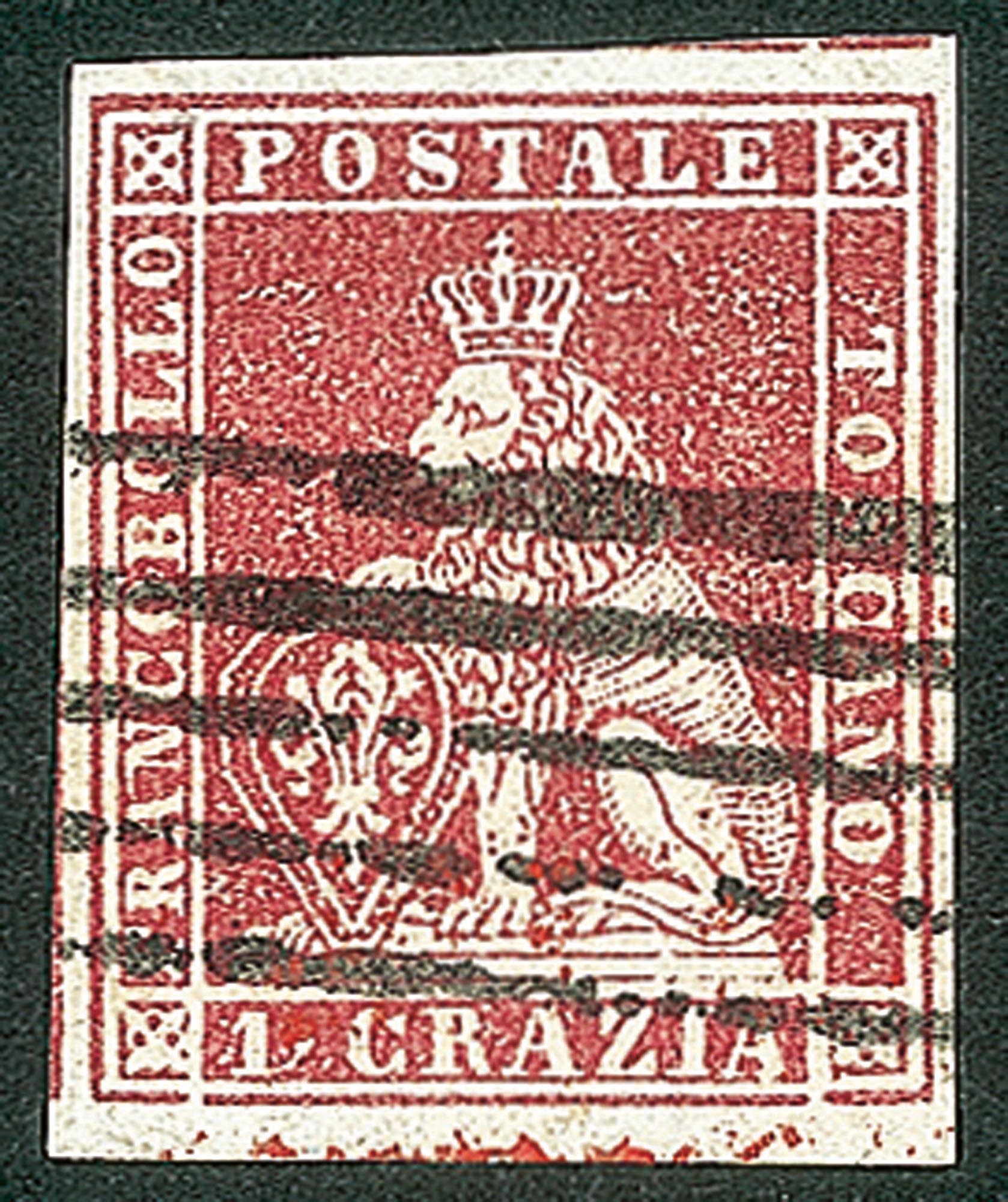 Lot 266 | Antichi Stati Italiani - Toscana - Difetti di cliché - 1851 - 1 crazia carminio bruno su grigio (4e)