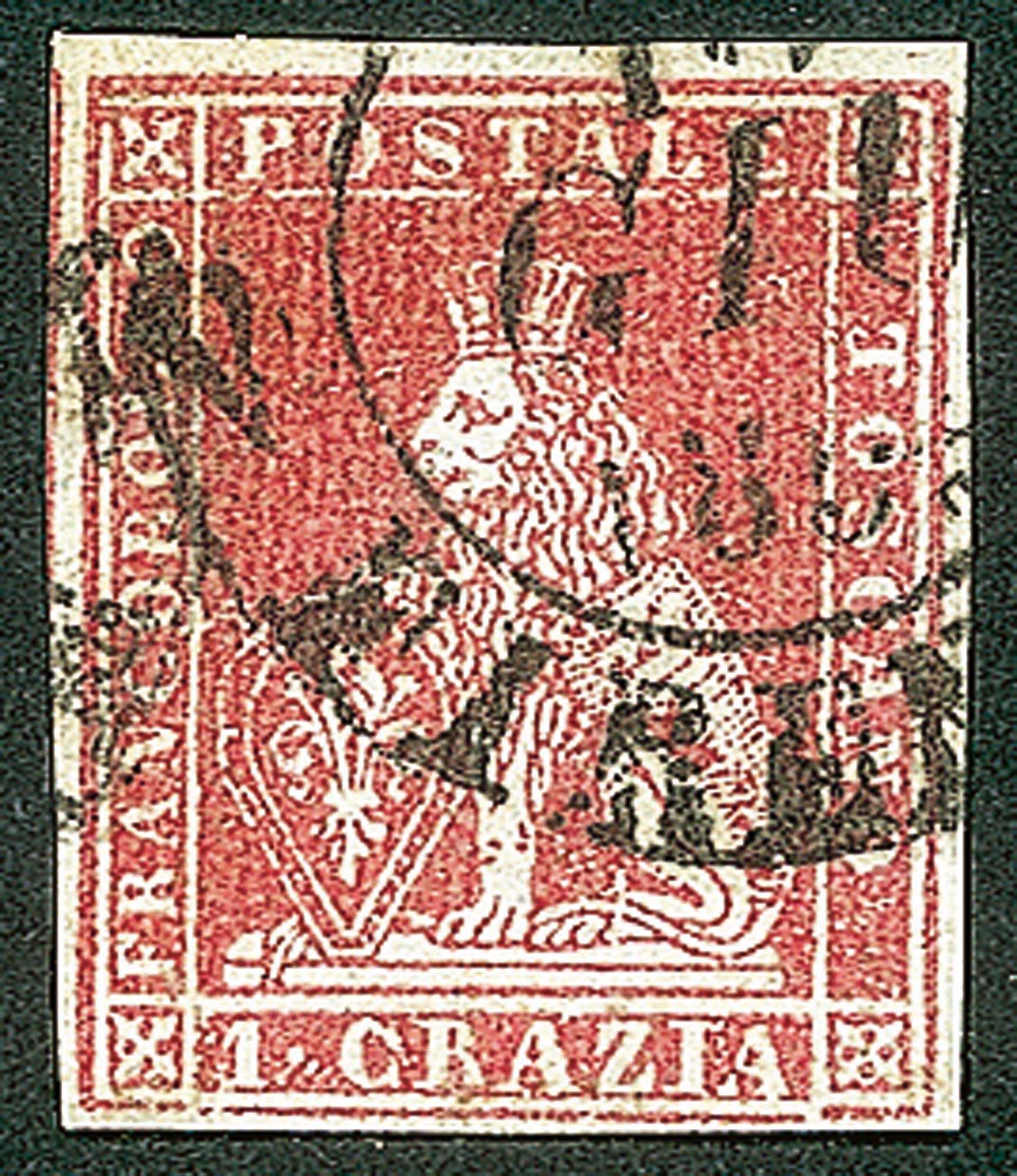 Antichi Stati Italiani - Toscana - Difetti di cliché - 1851 - Bell'esemplare del 1 crazia carminio su grigio (4d - Pos. 52)Con ornato superiore sinistro interrotto più coda unita alla linea di riquadro e T di Toscana con baffo - usato - molto bello - cert. Biondi
