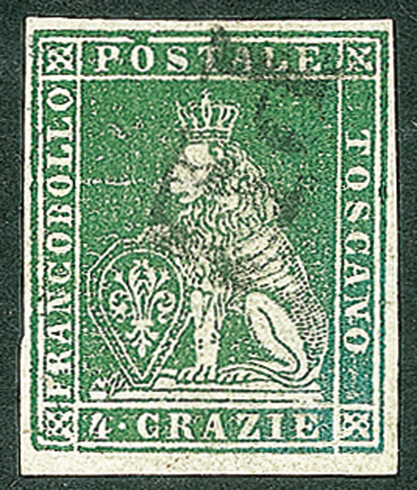 Antichi Stati Italiani - Toscana - Difetti di cliché - 1851 - Esemplare del 4 crazie verde su grigio (6)