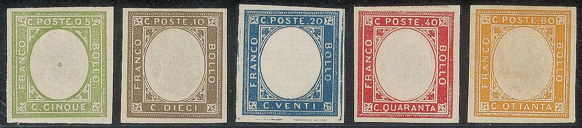Regno - Vittorio Emanuele II - 1861 - Non Emessi (1/5)Serie completa - gomma integra - 80 cent Diena