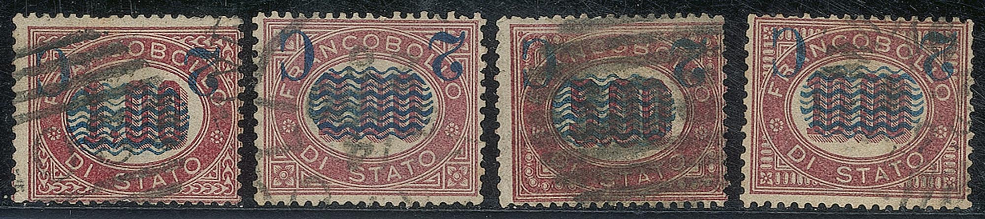 Regno - Vittorio Emanuele II - 1878 - Francobolli di Servizio (29/36)Con soprastampa capovolta - serie completa - usata - raro insieme - cert. Diena + cert. Raybaudi (certificati singoli)