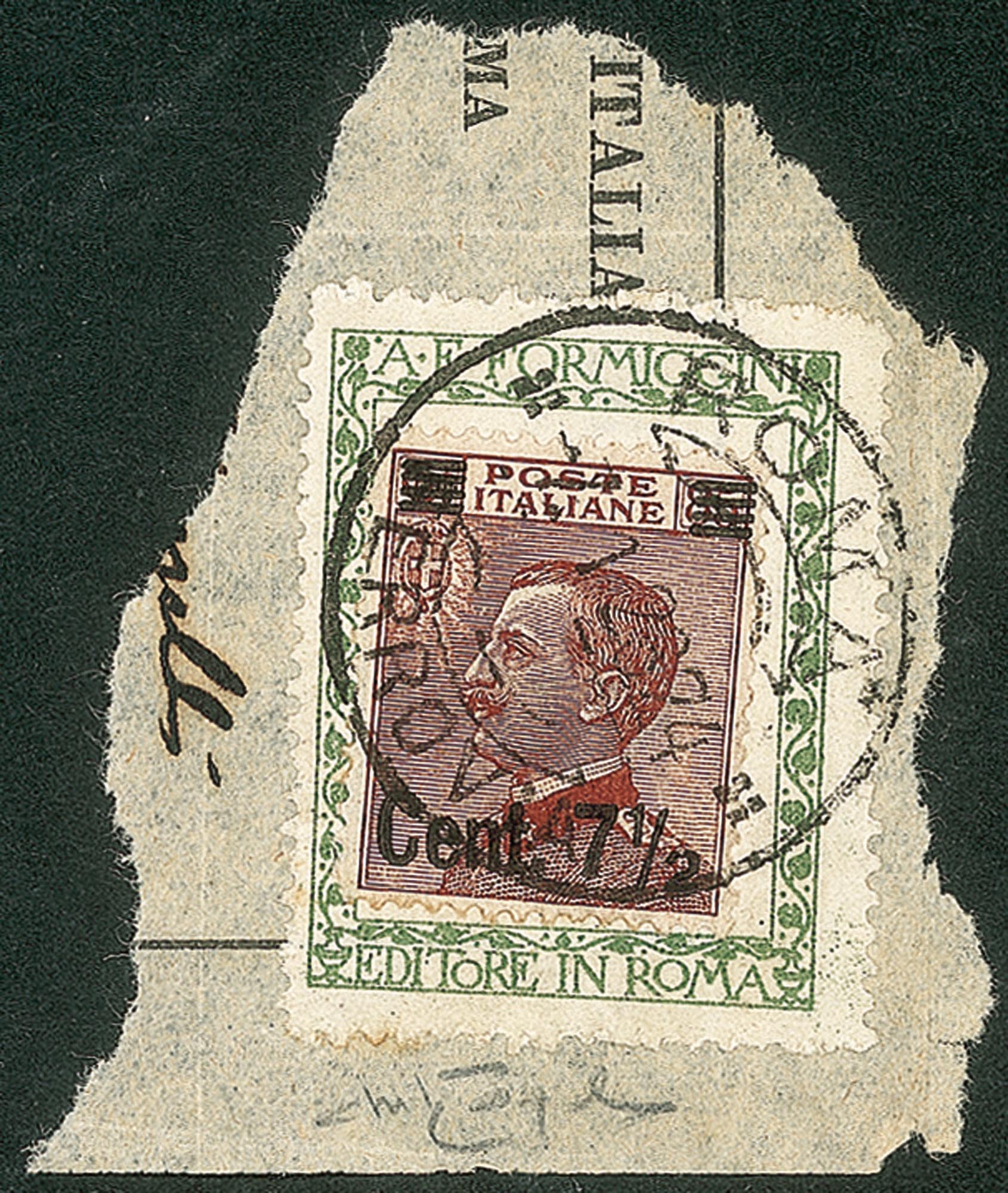 Lot 340 | Regno - Vittorio Emanuele III - Frammento con 7 1/2 cent su 85 cent (135)