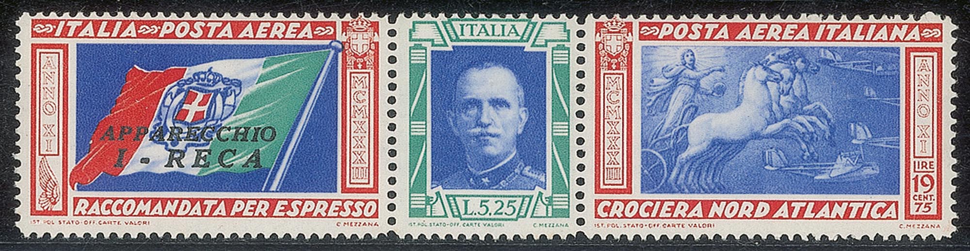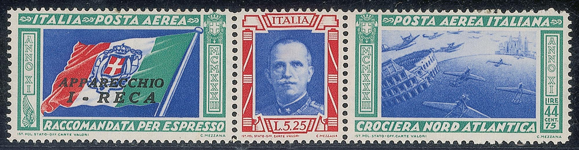 Regno - Vittorio Emanuele III - Posta Aerea e Aerogrammi - 1933 - trittico I_RECA (51/52 Q)
