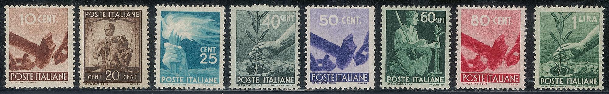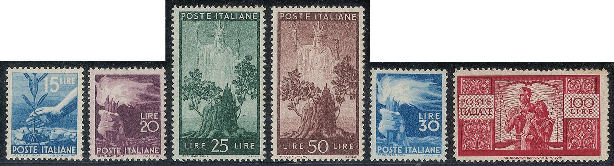 Italia - Repubblica - 1946/1947 - Democratica (543/565) - serie completa gomma integra