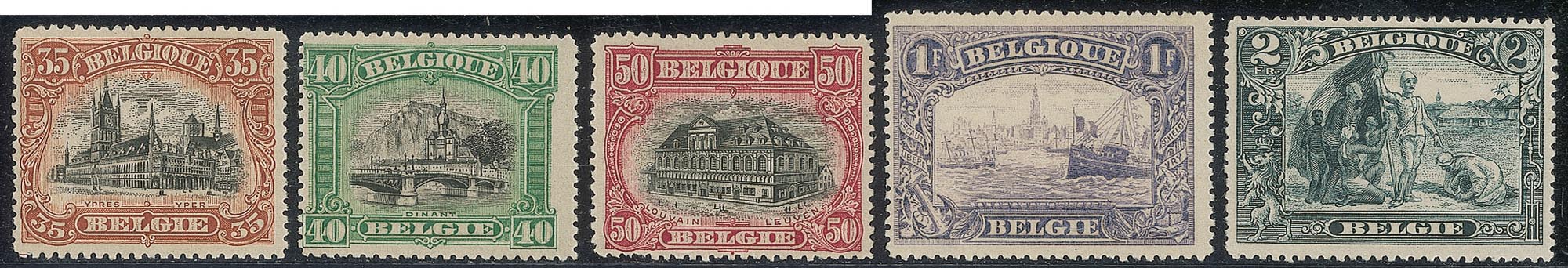 Europa e Oltremare - Belgio - 1915 - Soggetti Vari (142/149)Dentellata 14 - serie di 8 valori - gomma integra - 5 f. 'Franken' cert. Eichele