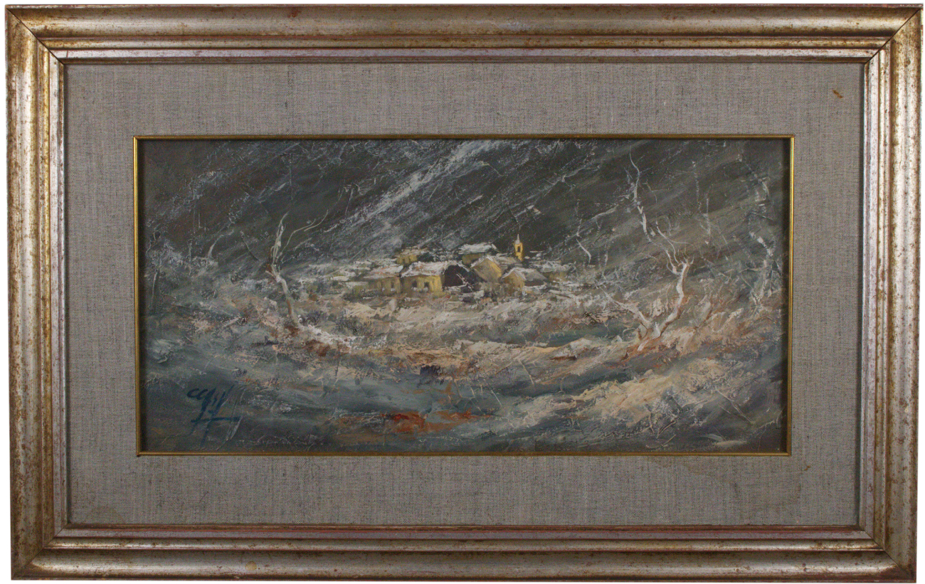 Anonimo Paesaggio invernale (XX secolo) Olio su tavola, 45x75 cm, con...