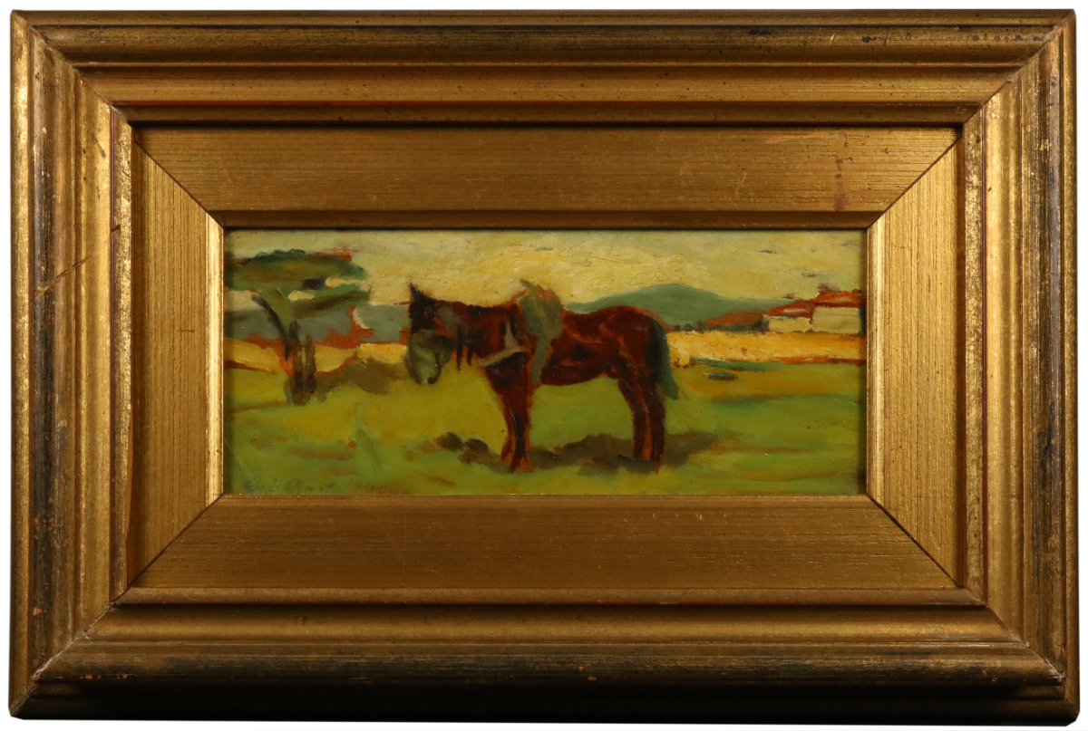 Lot 21 | Autore sconosciuto Cavallo (XX secolo) Olio su tavola, 10x25 cm, con cornice:...