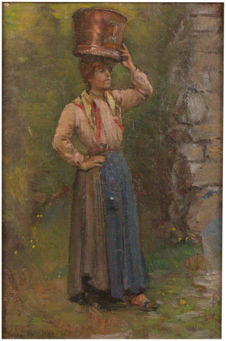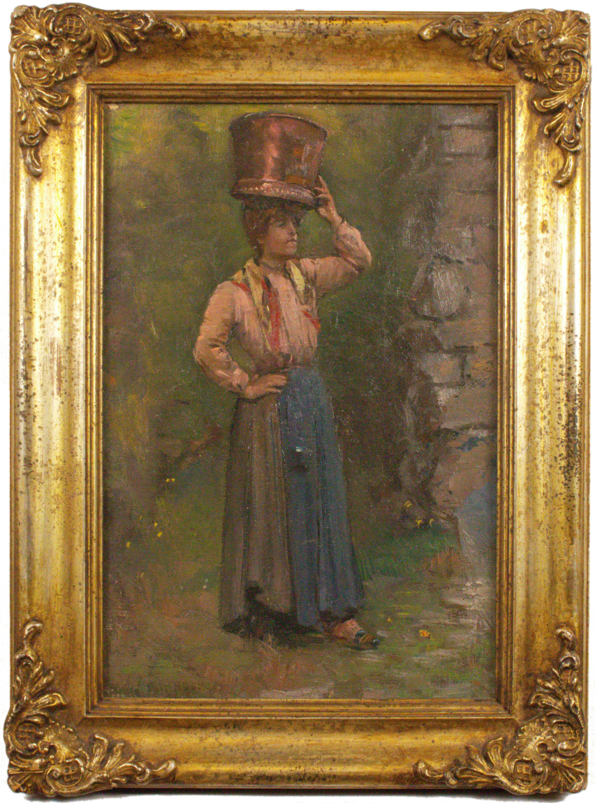 Alceste Campriani (Terni, 1848 – Lucca, 1933) Acquaiola Olio su cartone...