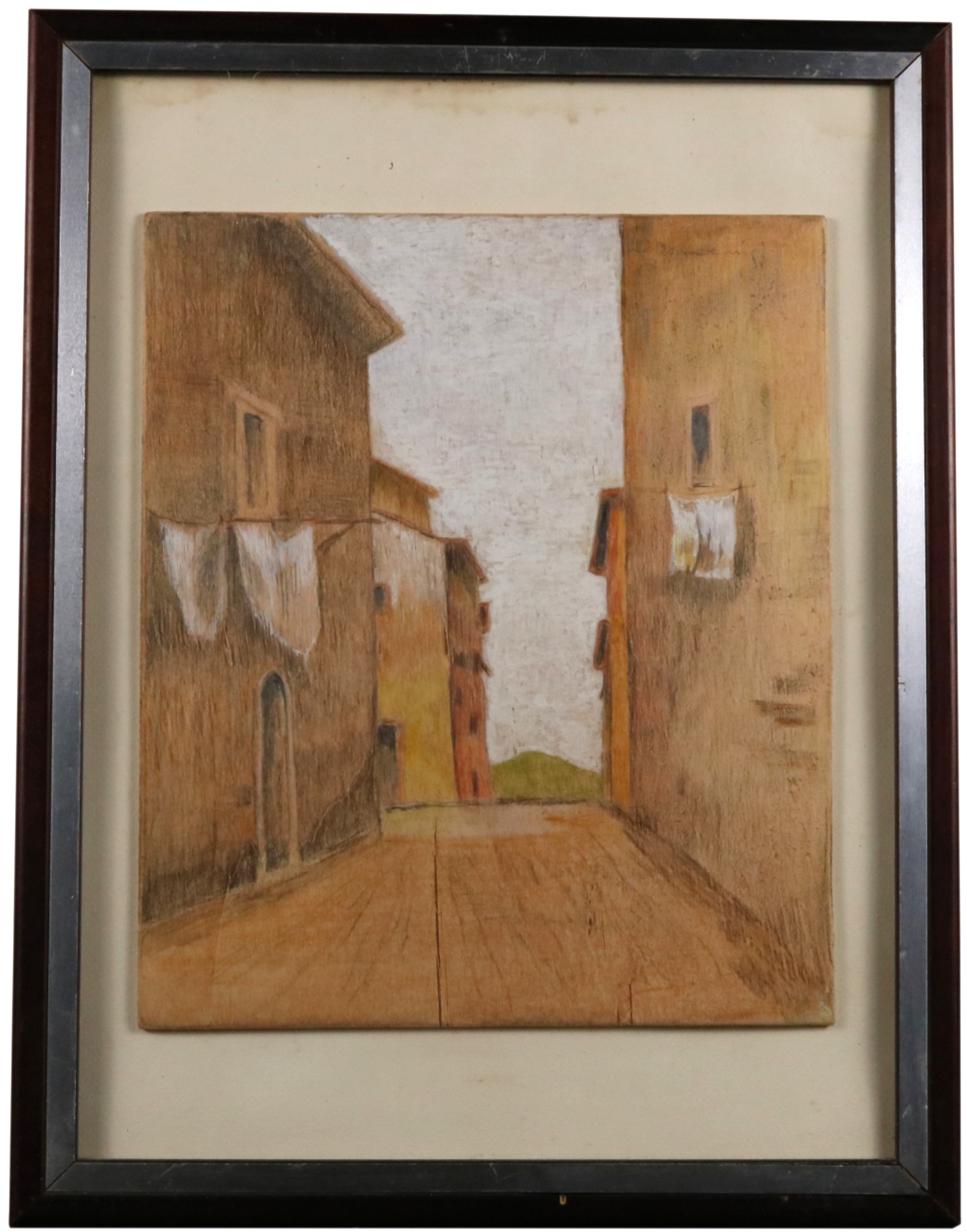 Carlo Domenici (Livorno, 1897 - Portoferraio, 1981) Studio per strada di...
