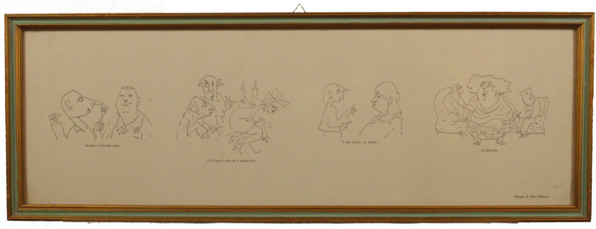 Mino Maccari (Siena, 1898 - Roma, 1989) Disegni Stampa, con cornice: 25x72 cm...