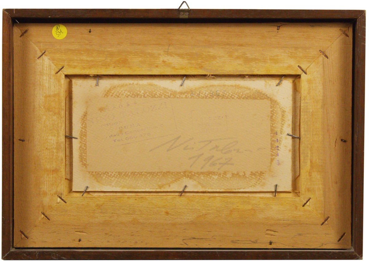 Firma in basso a destra, data in basso a sinistra, sul verso: firma e data, timbro del pittore
