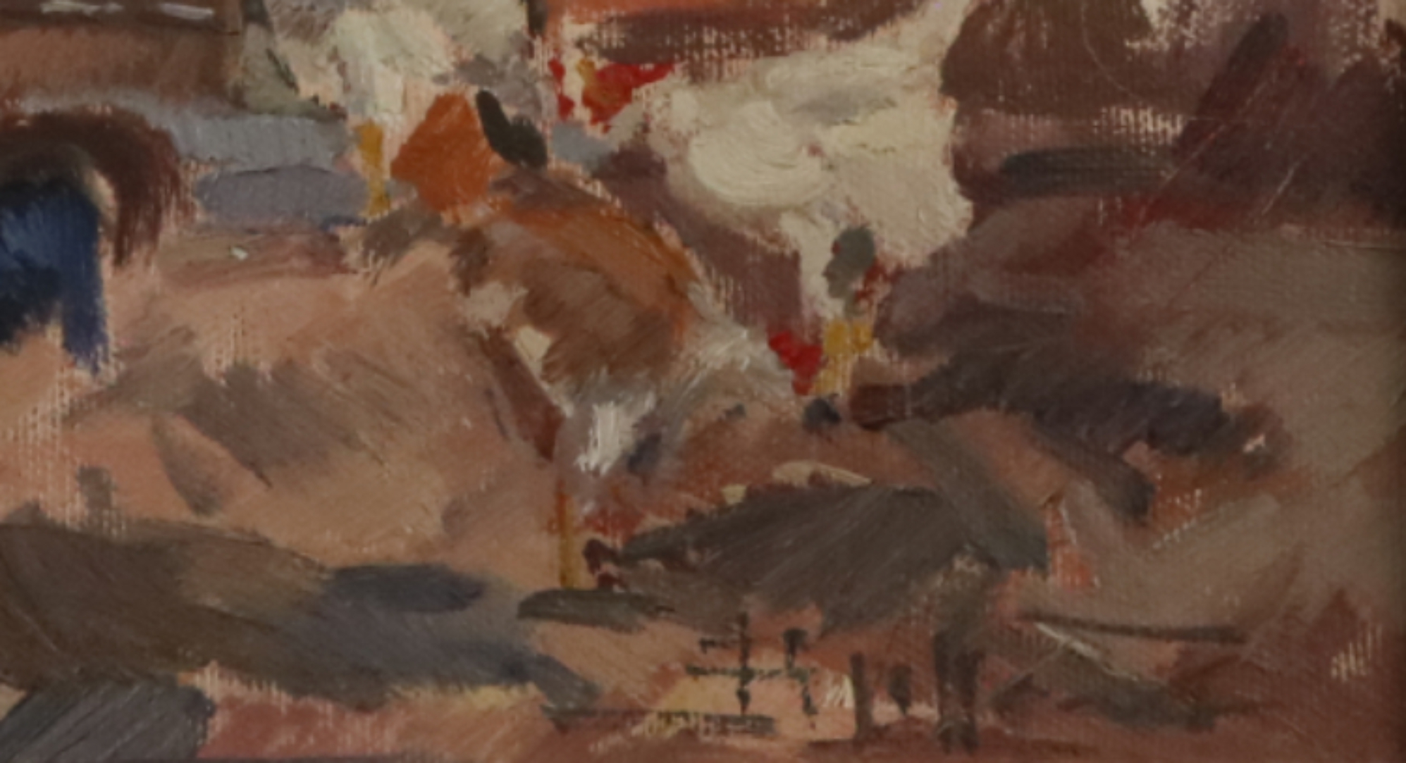 Opera in buono stato di conservazione, si segnala piccolo taglio nella tela in alto a destra