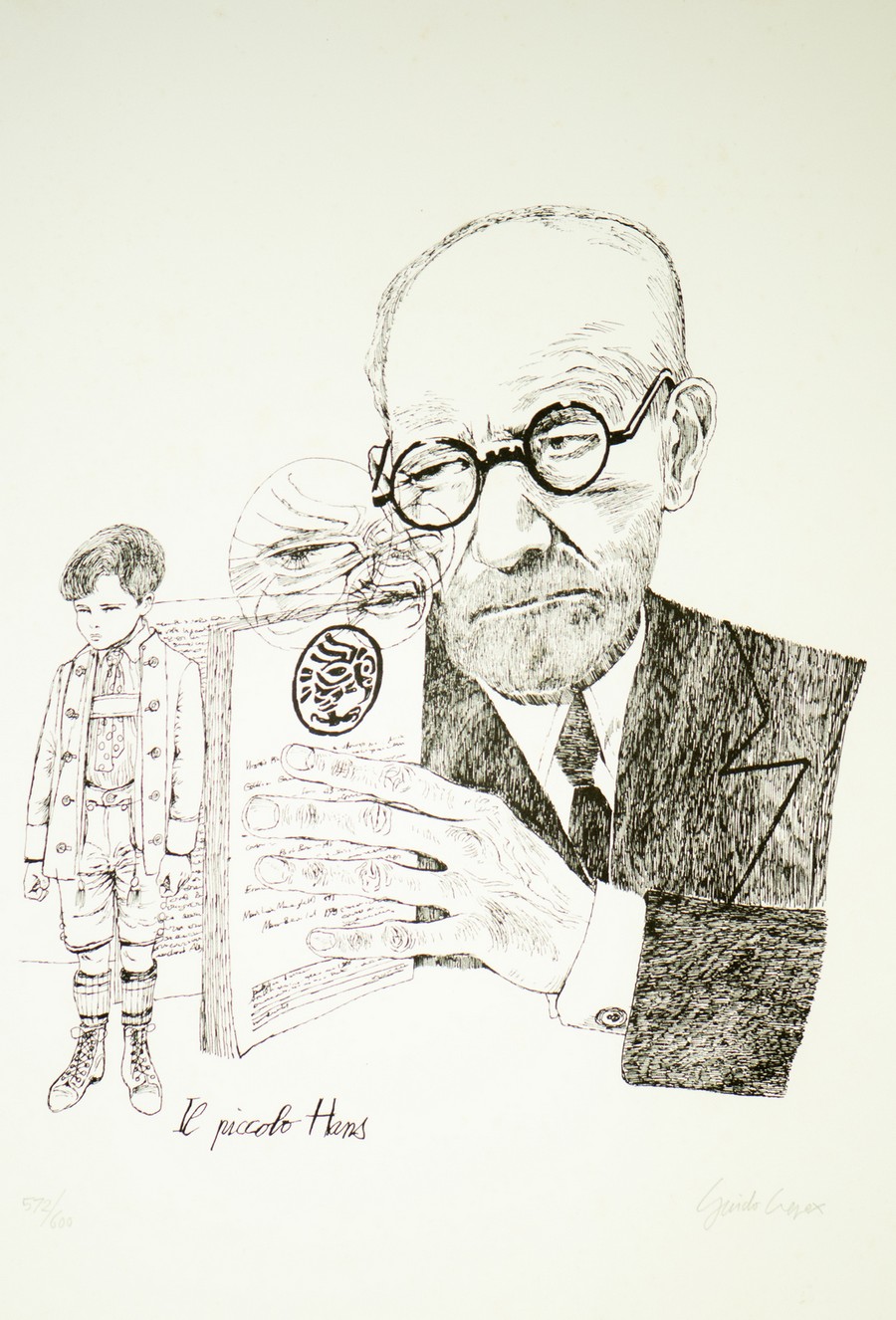 Eseguita per la rivista "Il piccolo Hans", titolo "1°Freud visto da Crepax", dalla serie Ritratti di Freud. Copie N. 600 arabi e 90 romani.