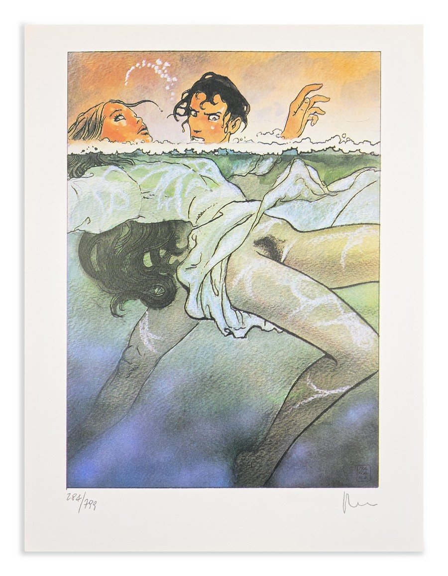 MANARA MILO (n. 1945) Ragazza e ragazzo in acqua. Serigrafia. Cm 29,50 x 39,50. firma e tiratura (es. 284/799)
