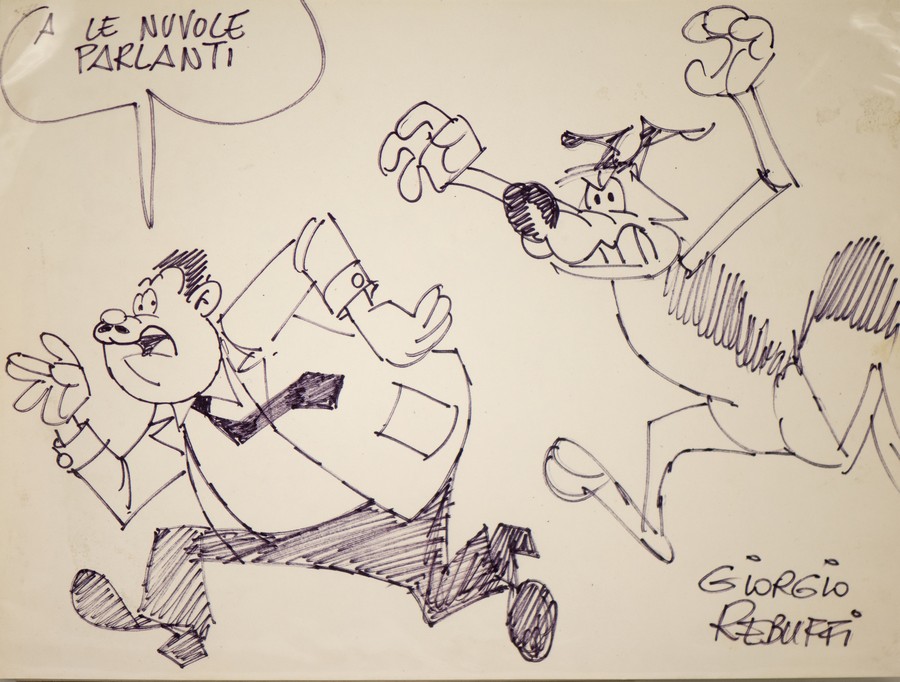 REBUFFI GIORGIO (1928 - 2014) RARA TAVOLA PER LE NUVOLE PARLANTI. pennarello su carta. Cm 32,00 x 24,00. firma in basso a destra