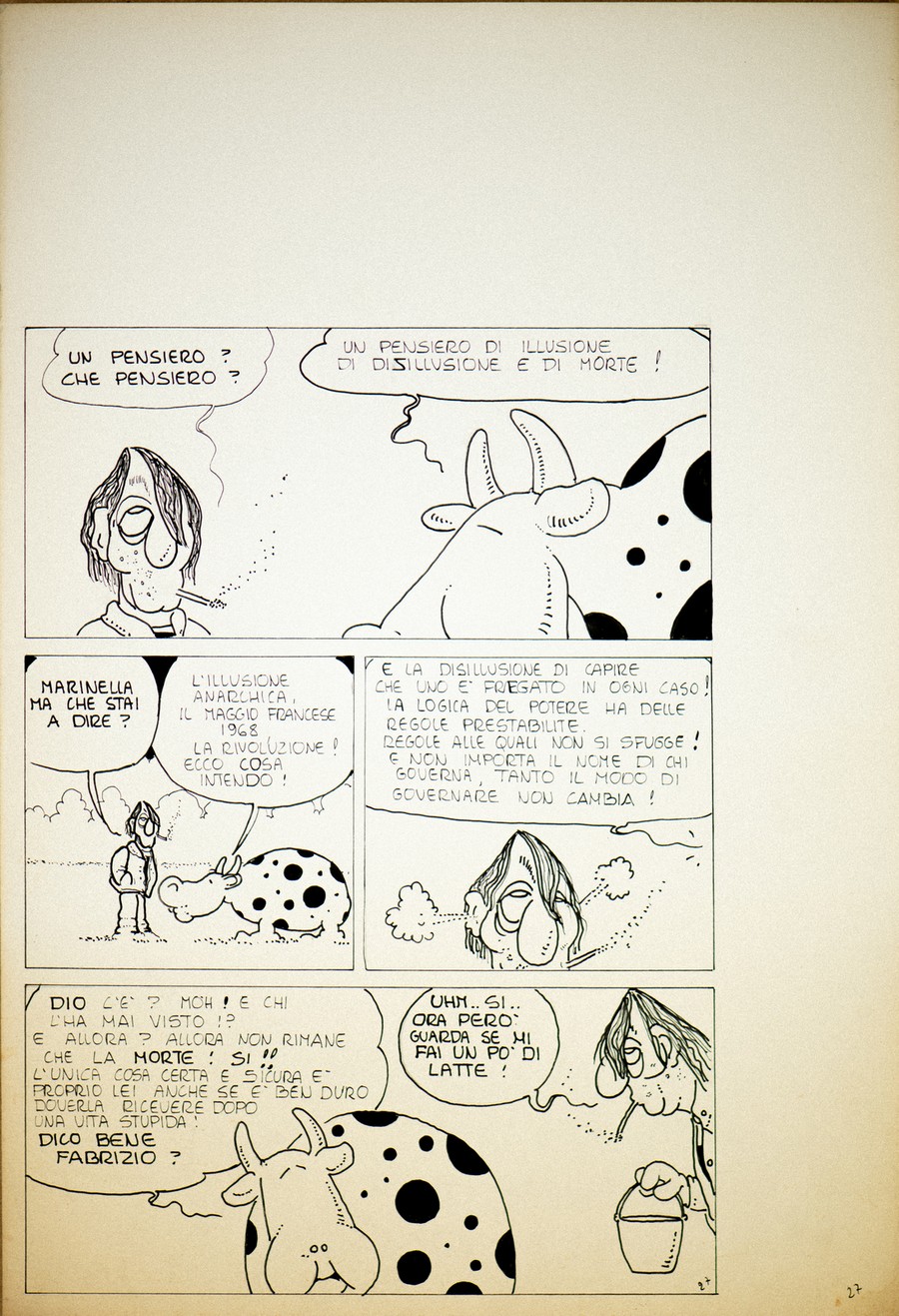 CAVEZZALI MASSIMO (1950 - 2023) PIGLIA E DALLA IN CONCERTO: FABRIZIO DE ANDRE'. 1981. China su carta. Cm 30,00 x 40,00. Pagina 27 ma in realtà a pagina 43 del volume pubblicato su L'isola trovata del 1981