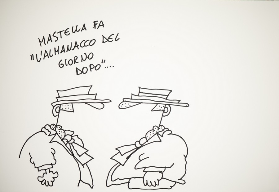 ELLEKAPPA (Laura Pellegrini) (n. 1955) "Mastella fa l'almanacco del giorno dopo...". Pennarello su cartoncino. Cm 48,00 x 33,00.