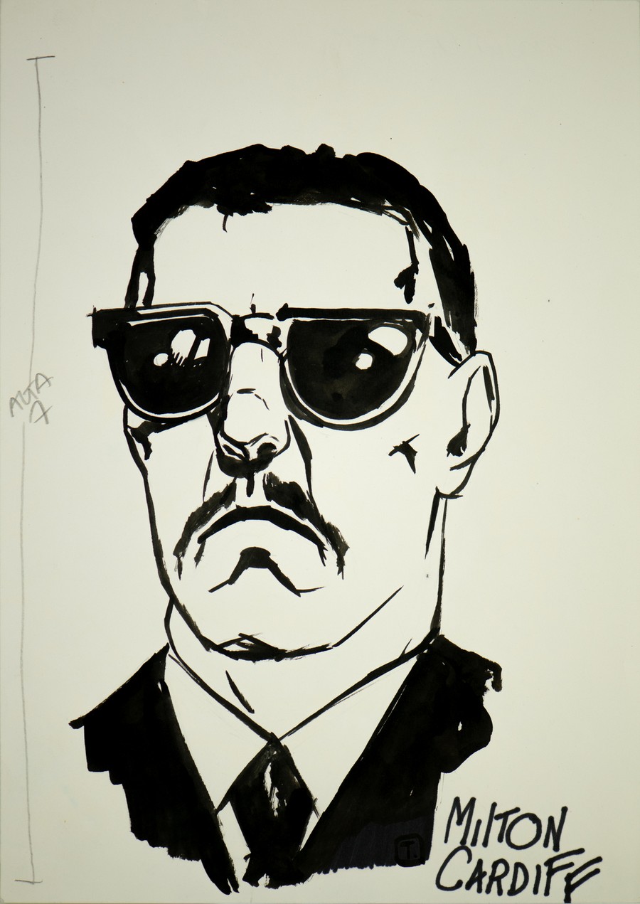 LIBERATORE TANINO (n. 1953) Milton Cardiff per "Il Male ". 1980. pennarello su carta. Cm 21,00 x 29,00. siglata “T.”,