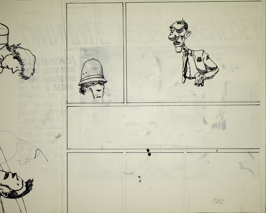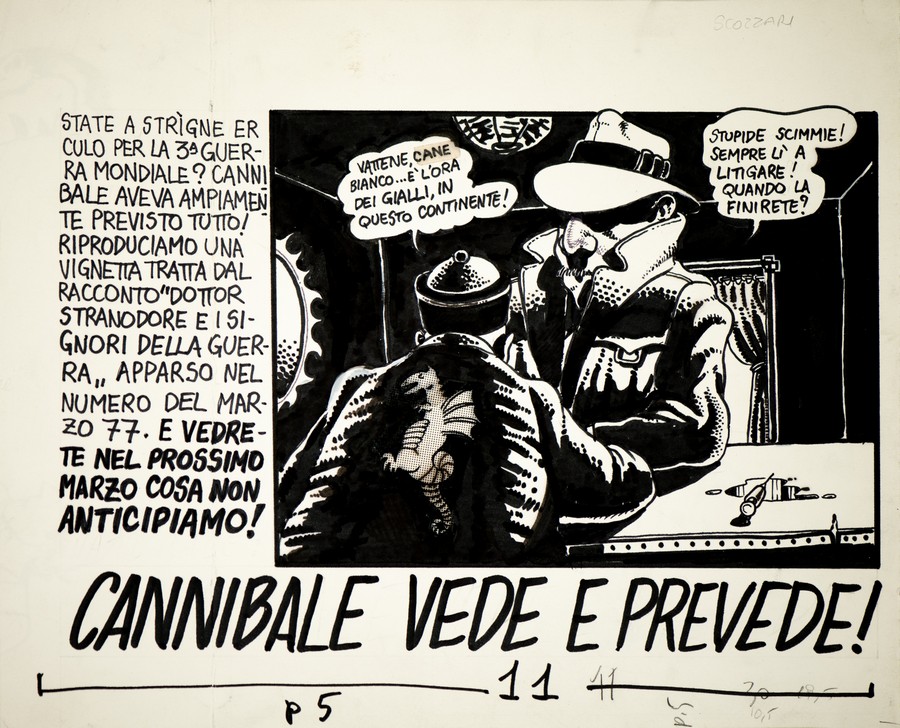 SCOZZARI FILIPPO - ANDREA PAZIENZA Cannibale vede e prevede. 1979. China e pennarello su carta. Cm 33,00 x 27,00. Pubblicata su “Il Male” n. 7 / 1979.