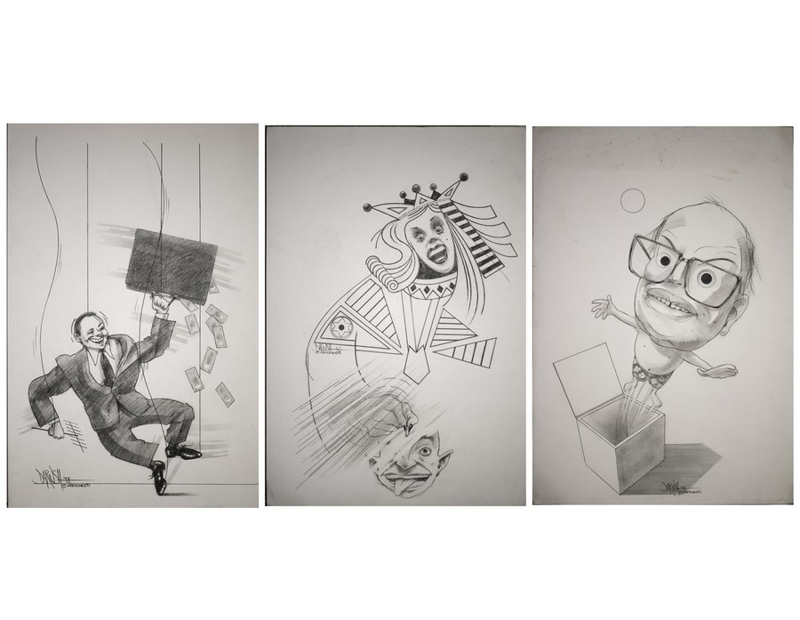 RAPDPUR DARIUSH Tre illustrazioni per Avvenimenti . Pastelli su cartoncino.. Cm 33,00 x 48,00. 2) 43x30 cm