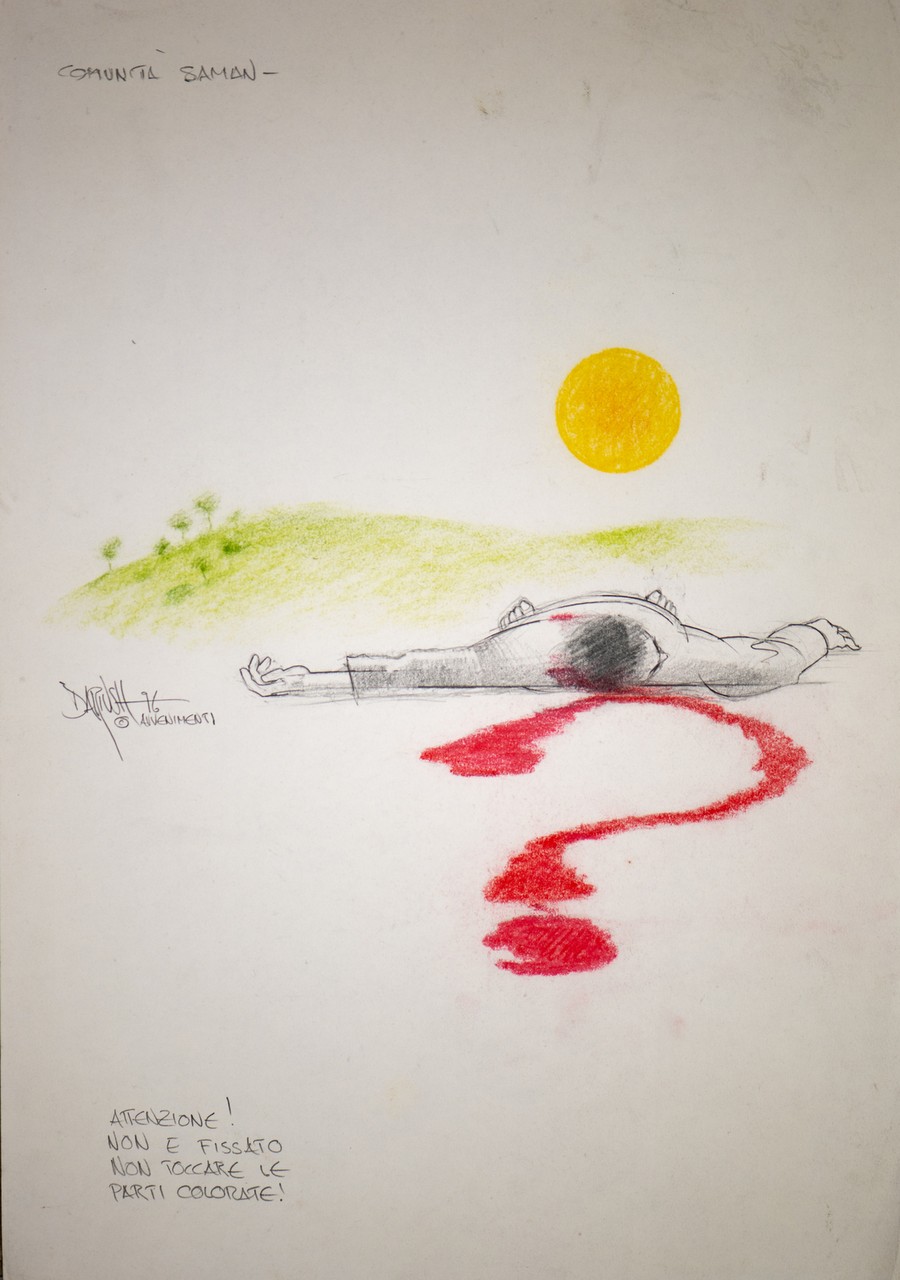 RAPDPUR DARIUSH Tre illustrazioni per Avvenimenti . Pastelli su cartoncino.. Cm 30,00 x 42,00. 2)38x28 cm